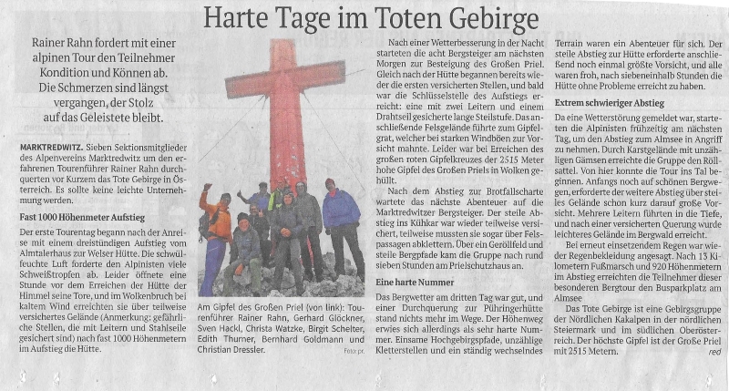 Die Vereinsmitglieder wandern in den Berchtesgadener Alpen. Der letzte Tag ihres Ausflugs verläuft etwas anders, als erwartet.