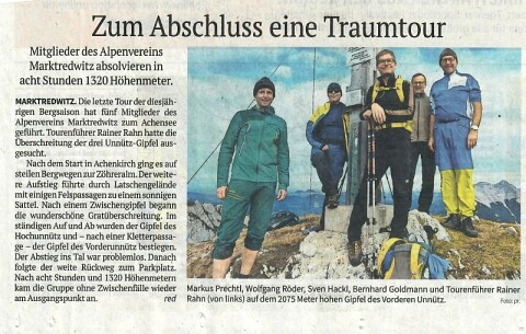 Unter Leitung von Tourenführer Rainer Rahn starten acht Mitglieder des Marktredwitzer Alpenvereins bei Traumwetter zu einer Tageswanderung im vorderen Karwendelgebirge. Lesen Sie hier den gesamten Bericht.