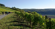 Nach einer Mittagspause am Wittelsbacher Turm, hoch über Bad Kissingen gelegen, ging es von dort auf zum Wander-Teil unserer Tagesreise. Der Weg führte uns jetzt zur Mittagszeit bei fast sommerlichen Temperaturen durch goldenen Herbstwald nach Wirmsthal und ab dort direkt durch die Weinberge nach Ramsthal.